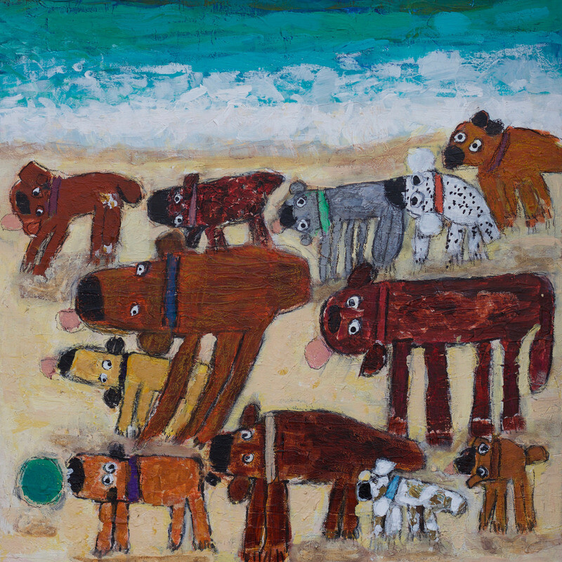 Welcome to Jane Ryan's art exhibition, Bloom n Bark. This exhibition celebrates love, dogs, flowers, belonging, and the soap opera Home and Away! Jane's vibrant artworks are an extension of her personality and passions. This exhibition invites people into Jane's world, a world bursting with colour, joy, dogs, and flowers. Bloom n Bark is a playful exhibition, a celebration of the memories and moments that make life beautiful.